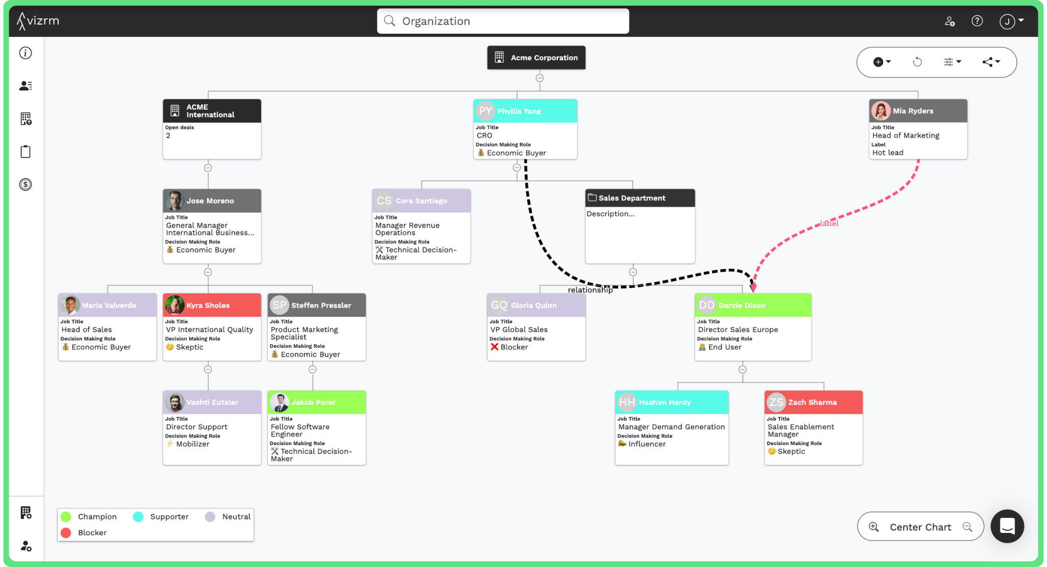 Organize and label your map by departments, teams, and buying committees to maintain a clear view of complex account setups.