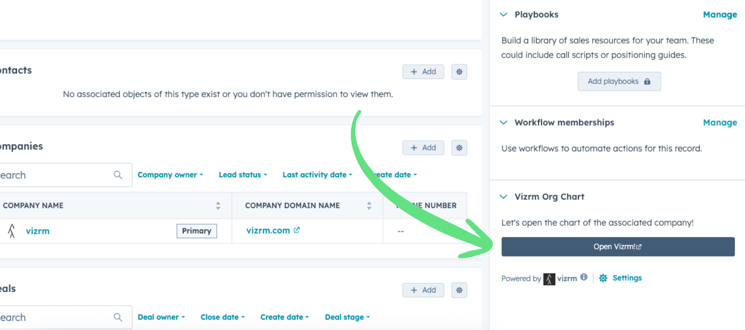 Sign up to vizrm for free and connect it with your HubSpot CRM. As soon as you configured the app inside HubSpot, you can easily create org charts and map key stakeholders.