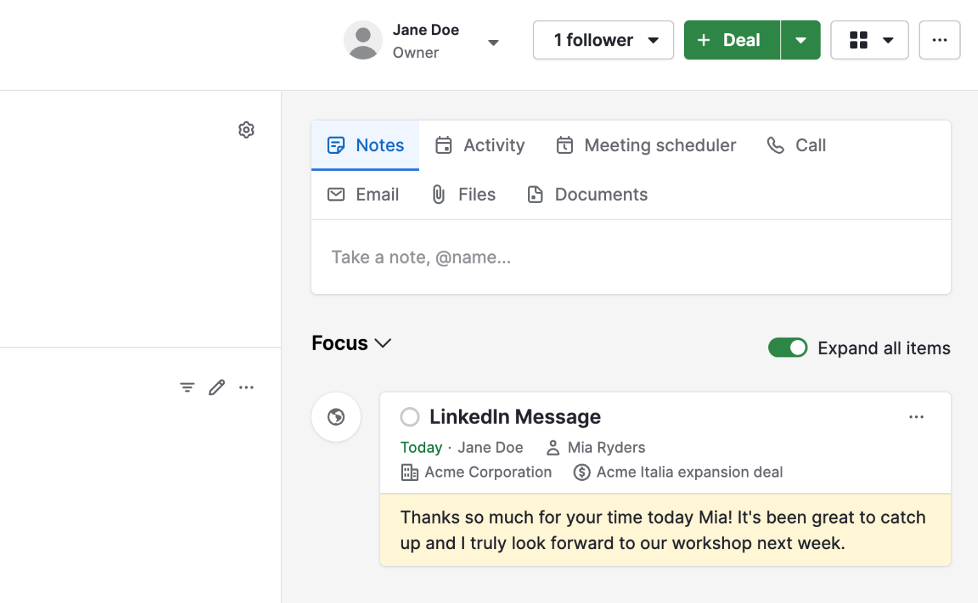 Push LinkedIn contacts to Pipedrive in a single click, no manual entry. Update records, log activities, and manage deals right from LinkedIn. Save time and keep data accurate.